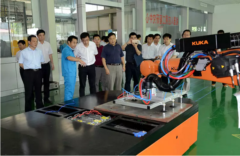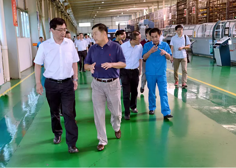在森源電氣,督導組一行深入電氣車間,了解產品的生產情況。在生產車間,督導組察看了智能柜體裝配線、變壓器制造基地、世界最先進的鈑金柔性智造系統的生產運行情況。考察了森源電氣機器人應用工程研究中心,觀看了正處于試驗運行中的智能AGV運輸機器人。