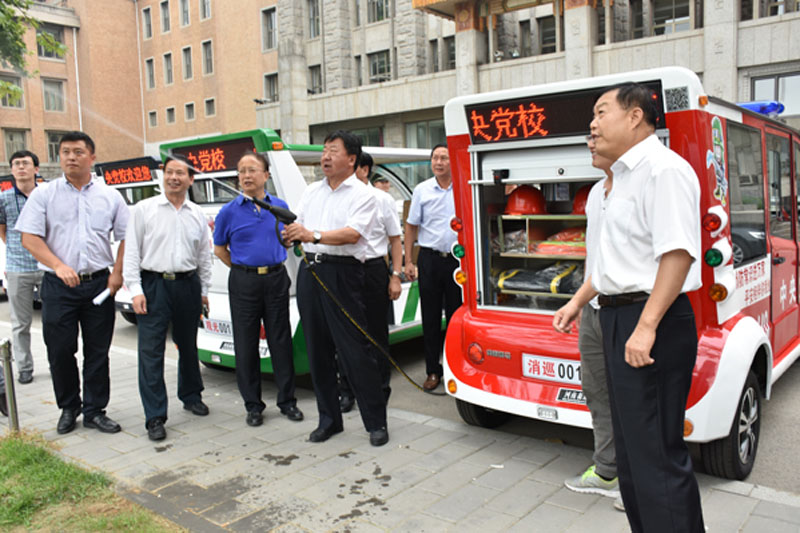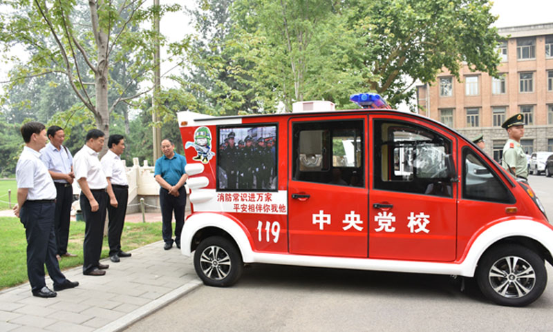 ? ? ? ?中共中央黨校等領導觀看了消防巡邏車演示并乘坐了電動巡邏車。期間,中共中央黨校常務副校長何毅亭體驗了使用消防車水槍,近距離的接觸最直接的感受到了森源制造的魅力。