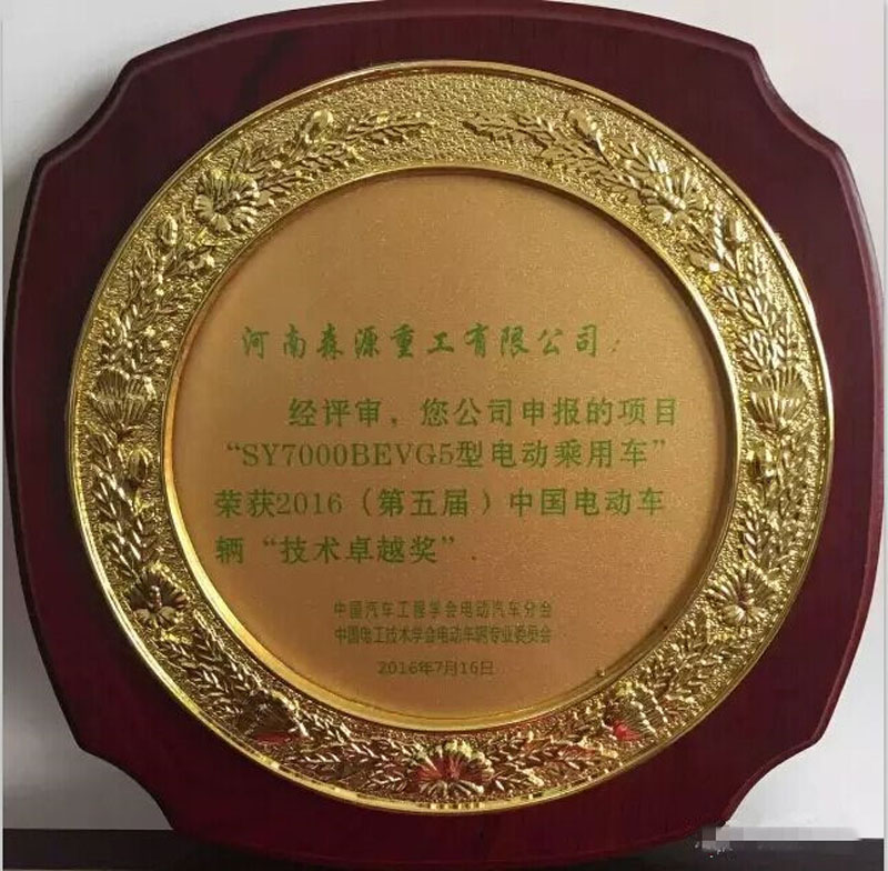 ? ? ? ?近日,2016年中國電動車輛技術卓越獎評選結果在京揭曉。河南森源集團旗下森源重工自主研發生產的SYG5型電動乘用車榮獲2016年度“電動車輛技術卓越獎”。值得一提的是,這也是繼2015年之后森源重工再次摘得此項殊榮。