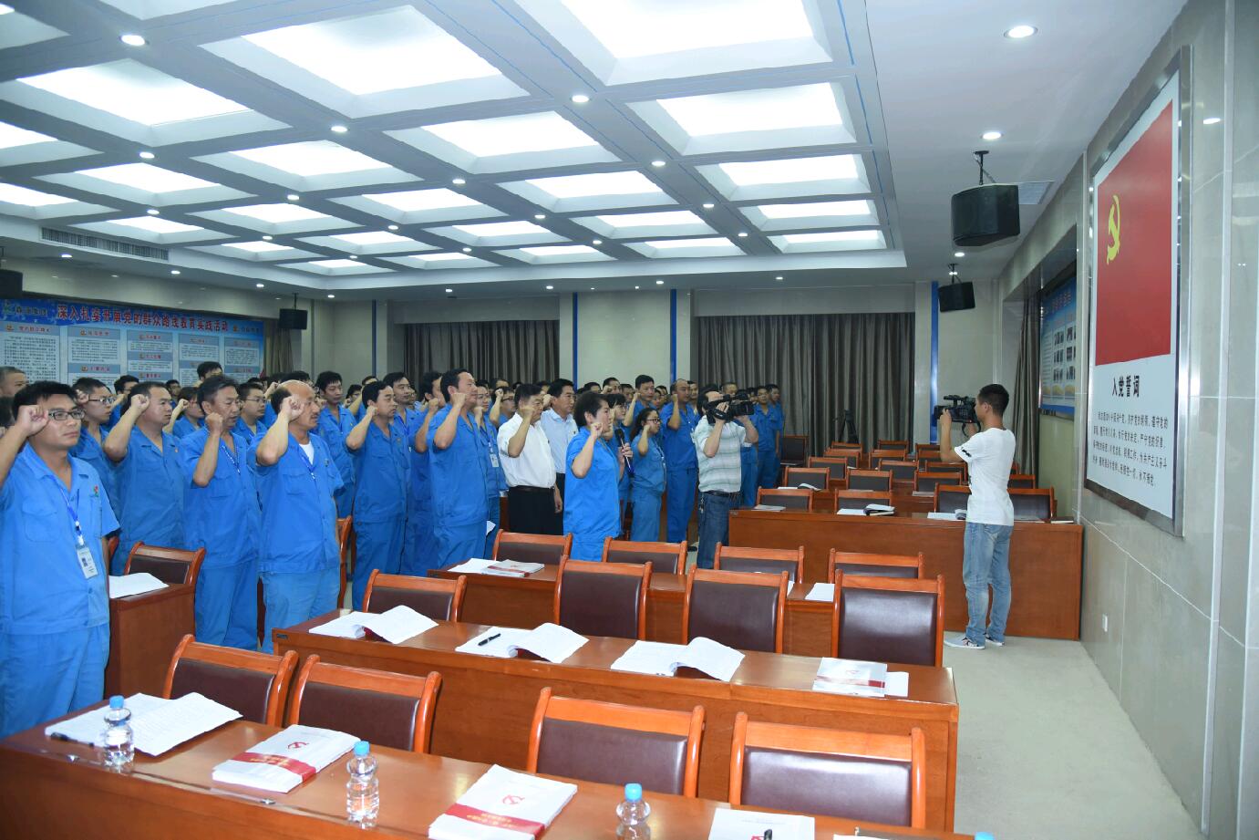 ? ? ? ?會議伊始,全體黨員起立,面向黨旗舉起右手,重溫入黨誓詞。每一位黨員情緒飽滿、神情專注,現(xiàn)場聲音洪亮、氣氛莊嚴。隨后,集團黨委副書記楊宏釗宣讀了《關于開展“學黨章黨規(guī)、學系列講話,做合格黨員”學習教育的實施方案》,對“兩學一做”學習教育工作進行動員部署。參會黨員共同學習了黨章,加深了對黨的性質宗旨、目標任務、組織制度、作風紀律等的認識。當獲獎的4個先進基層黨支部代表及34名優(yōu)秀共產黨員上臺領取獎牌、證書時,會場響起陣陣熱烈的掌聲。