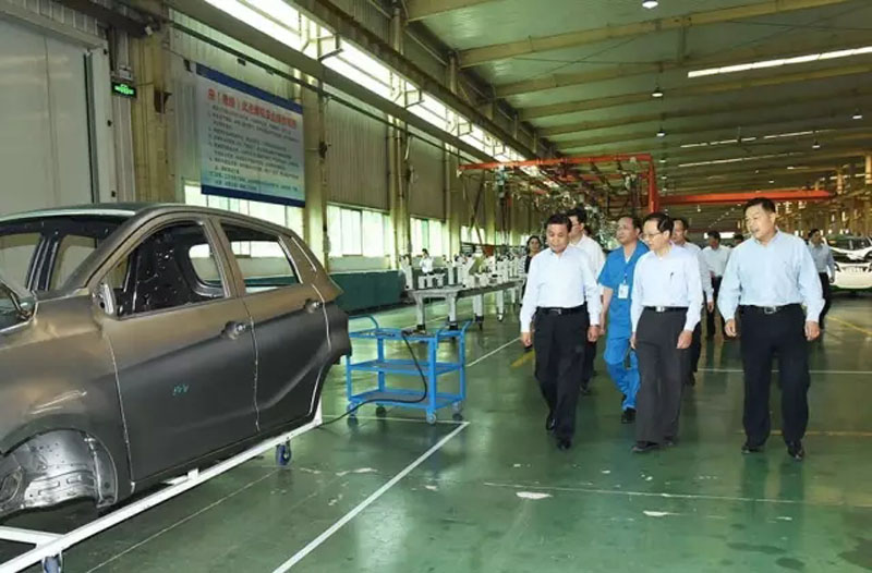 ? ? ? ? 隨后,陳清泰一行考察了森源重工電動汽車的生產(chǎn)和發(fā)展情況,了解了3000畝電動汽車產(chǎn)業(yè)園的建設(shè)情況,參觀了各裝配制造生產(chǎn)車間,觀摩了電動乘用車焊接、裝配生產(chǎn)工藝。