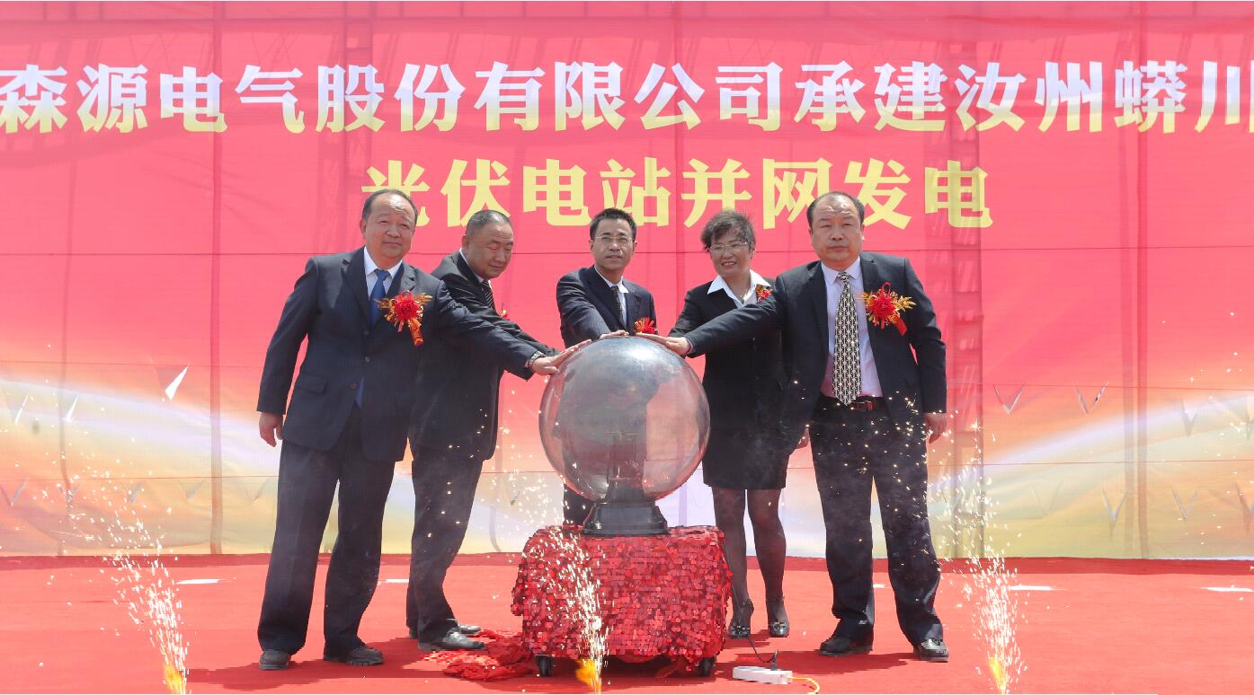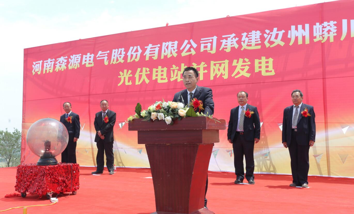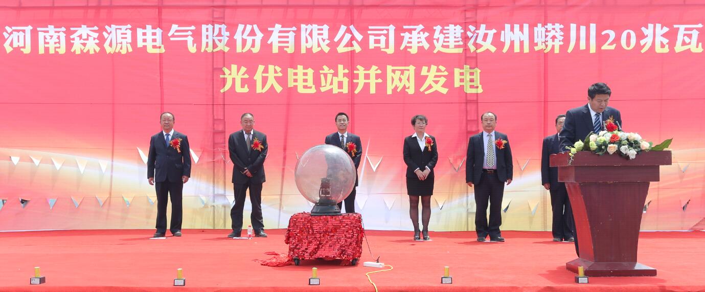? ? ? ? 5月18日,由森源集團旗下河南森源電氣股份有限公司承建的汝州蟒川一期20兆瓦光伏電站并網發電儀式成功舉行。集團副總裁、電氣板塊總經理曹宏,集團總裁助理李福全,汝州鑫泰光伏電力科技有限公司副總經理王冰等領導和項目有關部門負責人出席儀式并啟動電源開關,并網發電。